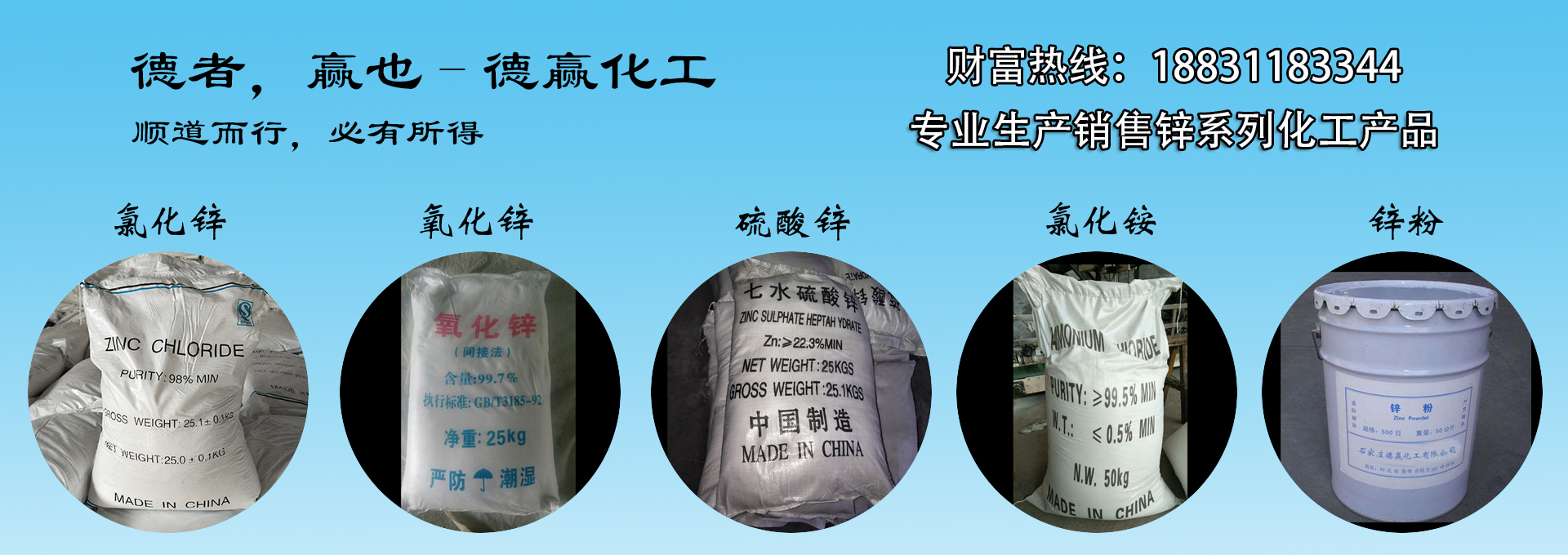 石家莊德贏化工有限公司位于河北省石家莊晉州市桃元工業(yè)區(qū),南鄰衡井公路,北鄰307國道,西鄰定魏公路,交通十分方便,集有色金屬冶煉和化工生產(chǎn)為一體的綜合性工業(yè)生產(chǎn)企業(yè),主要產(chǎn)品:氯化鋅年產(chǎn)12000噸,鋅錠(3#-4#)年產(chǎn)2000噸,鋅粉年產(chǎn)1500噸,氧化鋅年產(chǎn)3500噸,硫酸鋅年產(chǎn)1500噸,公司占地面積20000多平方米,擁有各類高級工程技術(shù)人員及現(xiàn)代辦公人員50余人、普通員工100多人。公司成立多年來,致力于鋅系列產(chǎn)品的開發(fā)研究生產(chǎn),根據(jù)市...